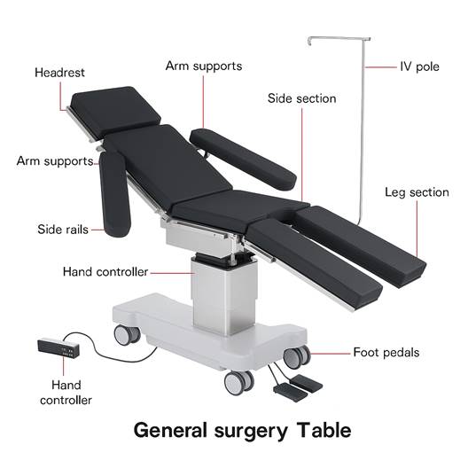 – Attachments: Specialized headrests, arm boards, lithotomy cradles, drainage pans, and kidney bridges.