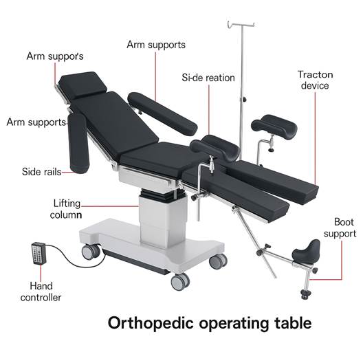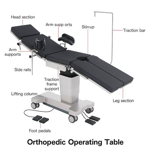 History: Orthopedic OT tables were developed to facilitate bone surgeries, traction, and joint procedures. The introduction of traction frames and spine boards marked a turning point in orthopedic surgery during the 20th century.