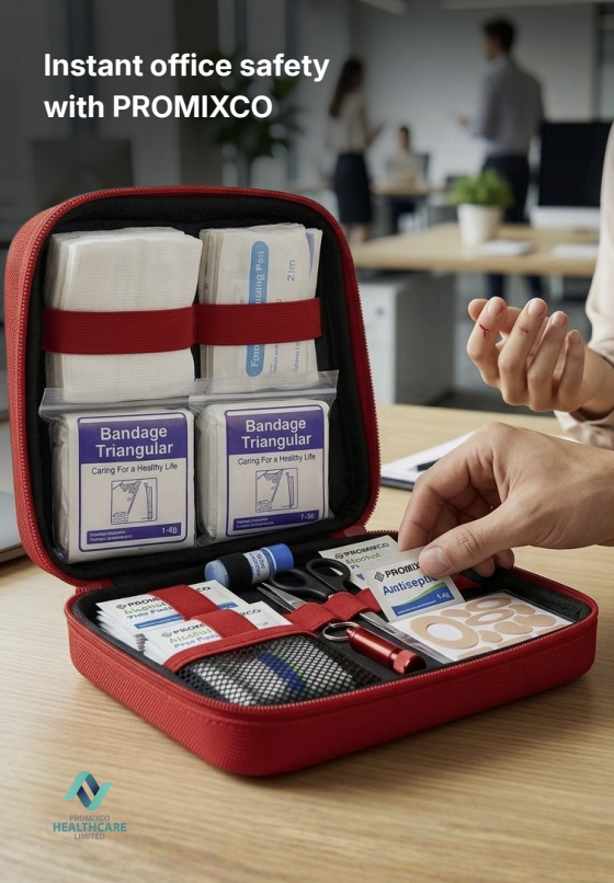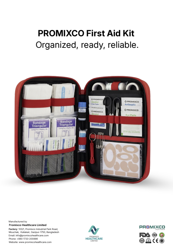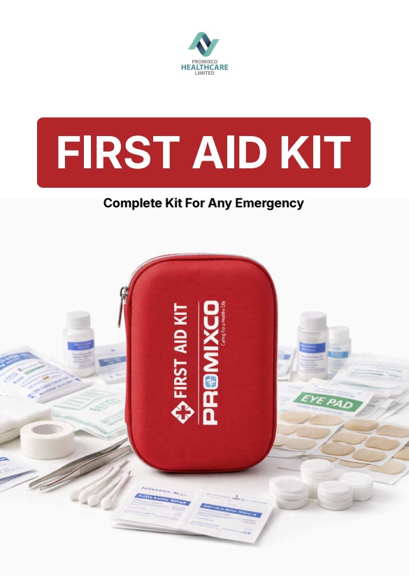 The PROMIXCO First Aid Kit is a durable, portable, and professionally designed emergency medical solution. Built with a hard-shell EVA case, it ensures safety, organization, and quick access to essential medical supplies in any situation—office, travel, or outdoor use.