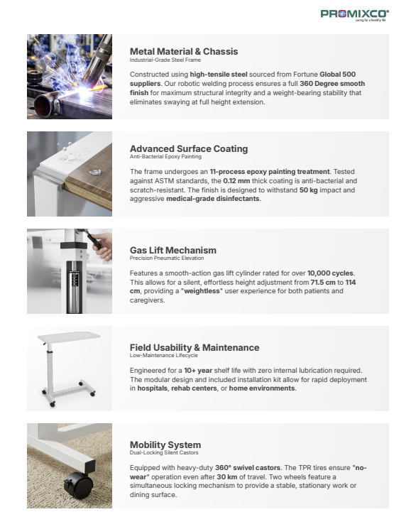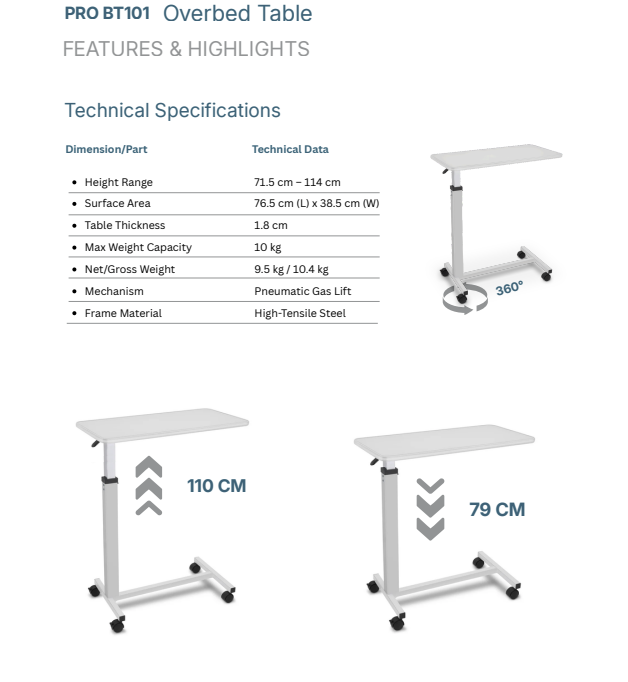 Enables effortless height adjustment from 71.5 cm to 114 cm, ensuring convenience for both patients and caregivers.