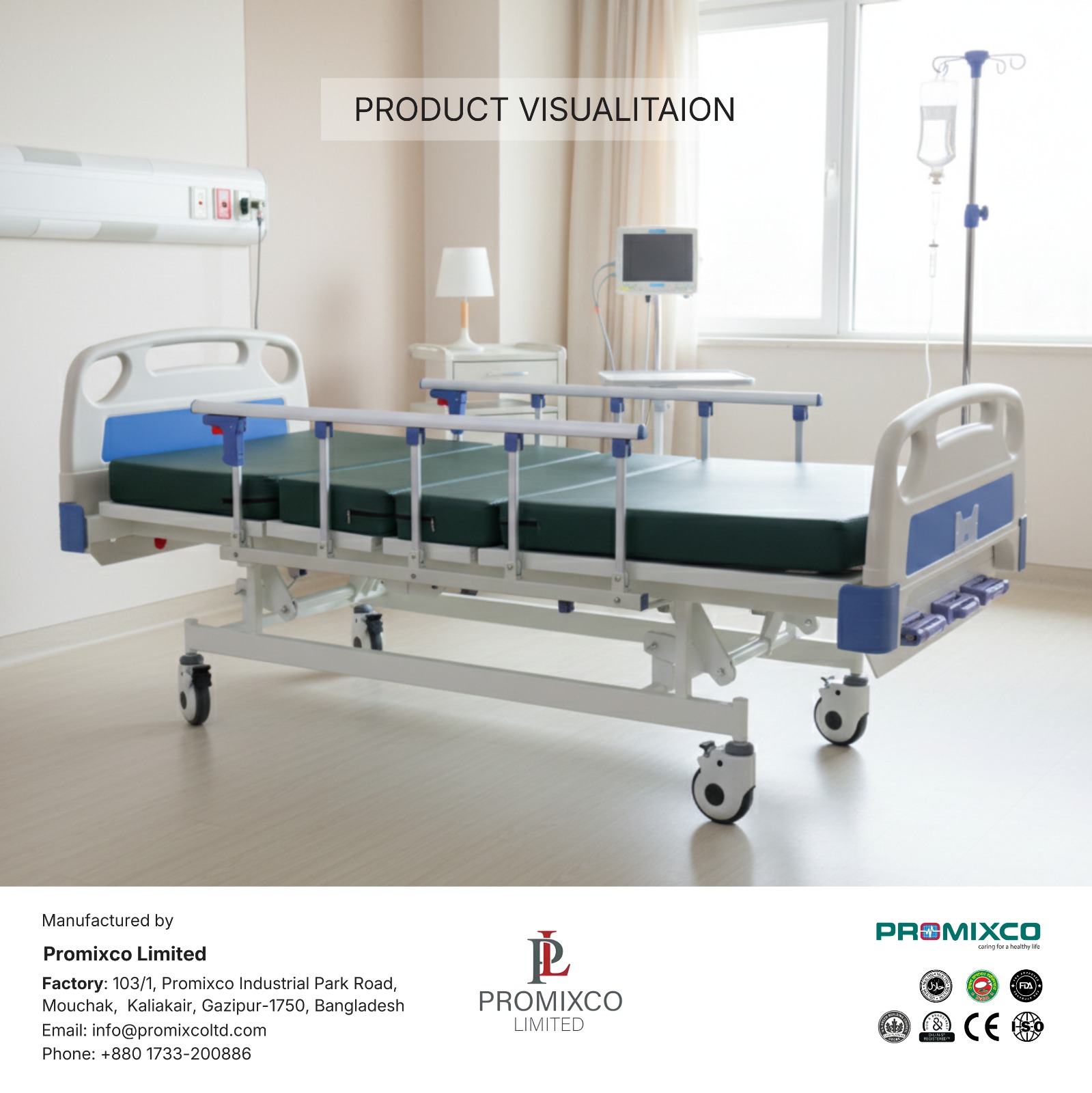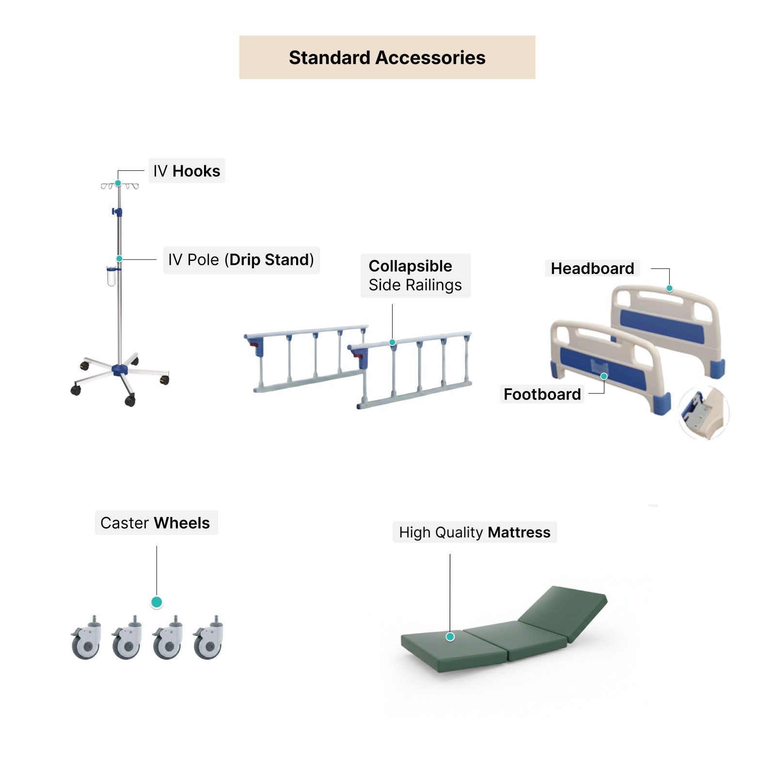 - Three Function Manual ICU Bed with Manually Operated by a Crank Mechanism.